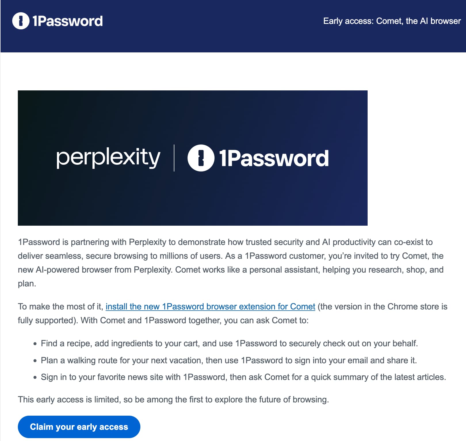 1Password qui team up avec Perplexity, qui eux mêmes se sont associés avec Trump pour Truth….