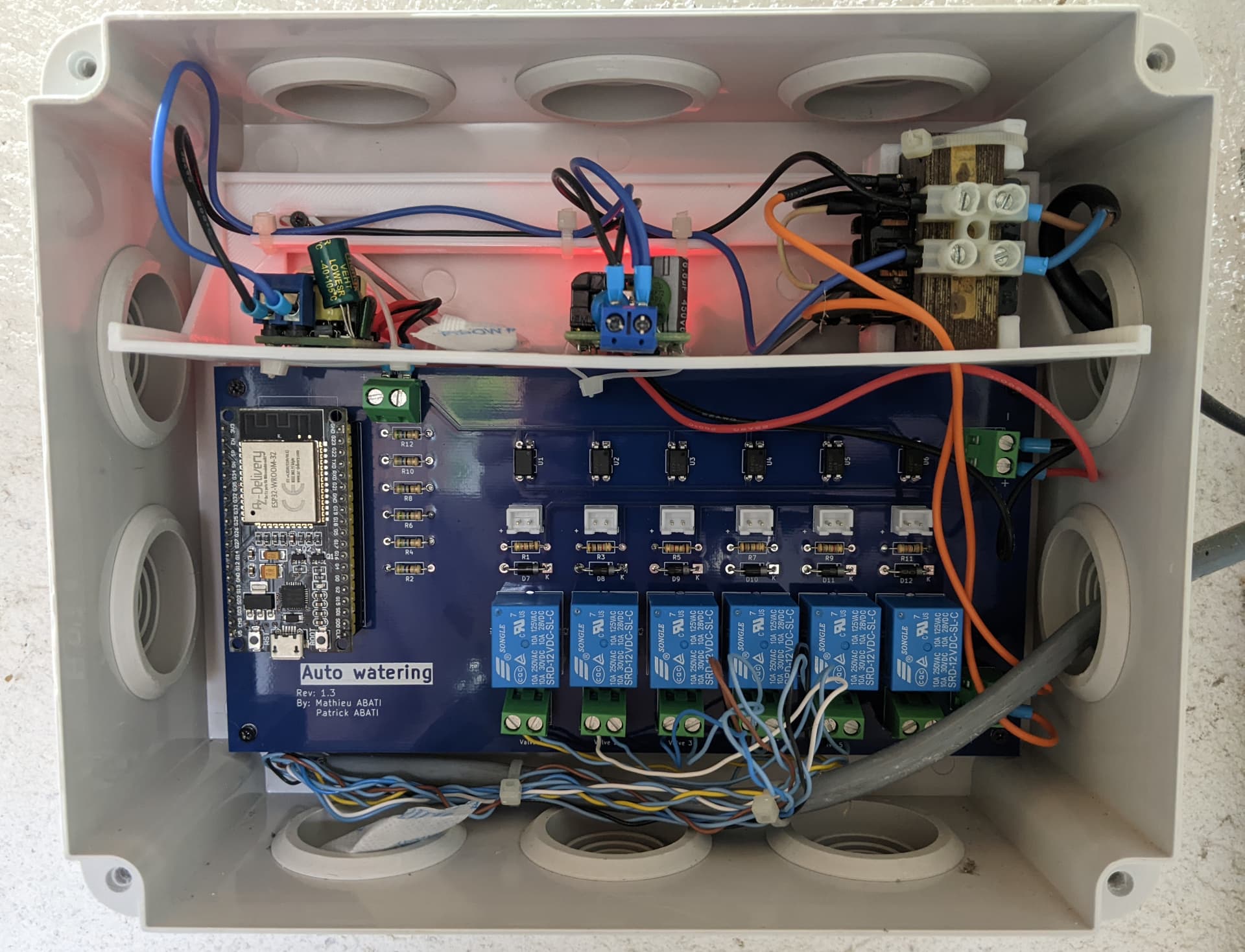 Il s’agit d’un arrosage automatique programmable connecté, en WiFi, il propose une interface web et il peut également être appairé à une instance HomeAssistant. Dans sa version actuelle, il est en mesure de commander jusqu’à 6 électrovannes.
