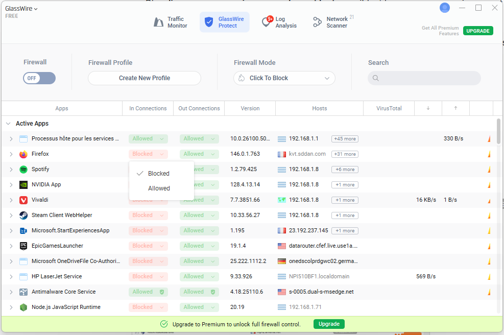 Merci. J’avais testé GlassWire il y a quelques années mais, dans mon souvenir, la version de base de permettait pas d’autoriser ou de bloquer telle out telle application lorsqu’elle cherchait à se connecter à internet. C’était juste de la surveillance. C’est ce qui m’a fait abandonné cette solution à l’époque.