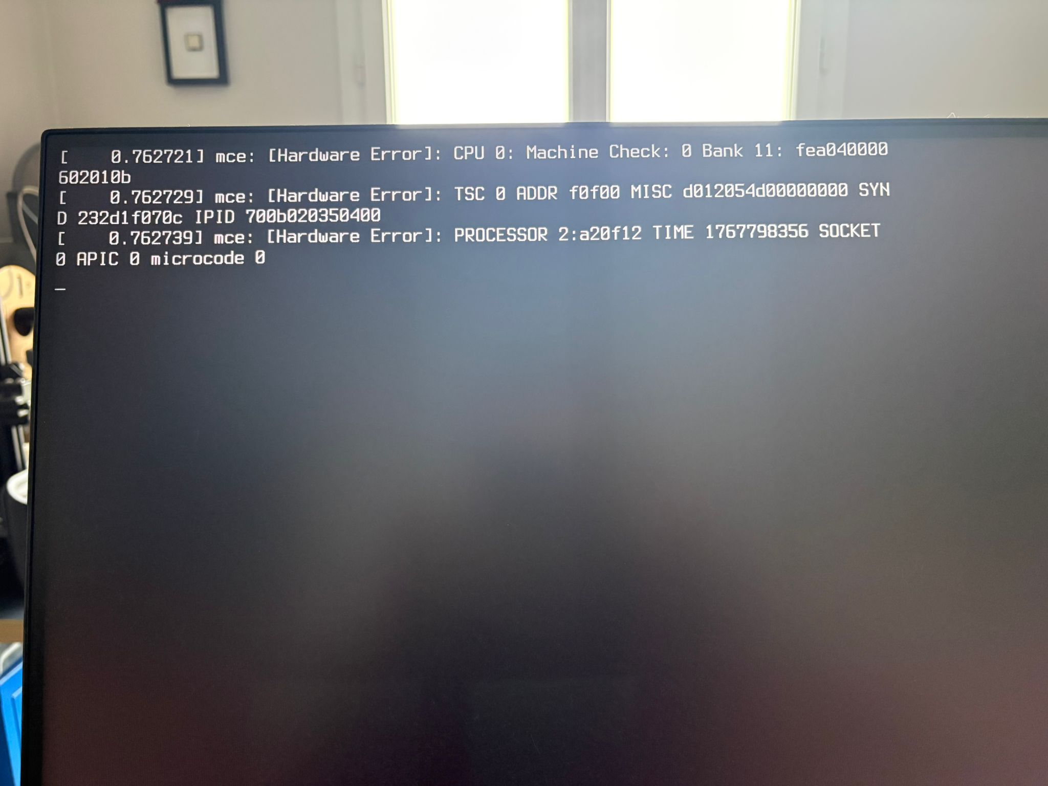 En fait, le message Hardware Error est apparu après un reboot qui a suivi la MAJ en Windows 11. Depuis, que ce soit en boot Windows ou Linux, ça plante, parfois en allant un peu plus loin, avec un message qui indique que l’OS va tenter une réparation puis freeze, parfois avec le message Hardware Error qui s’affiche juste après les contrôles du BIOS.