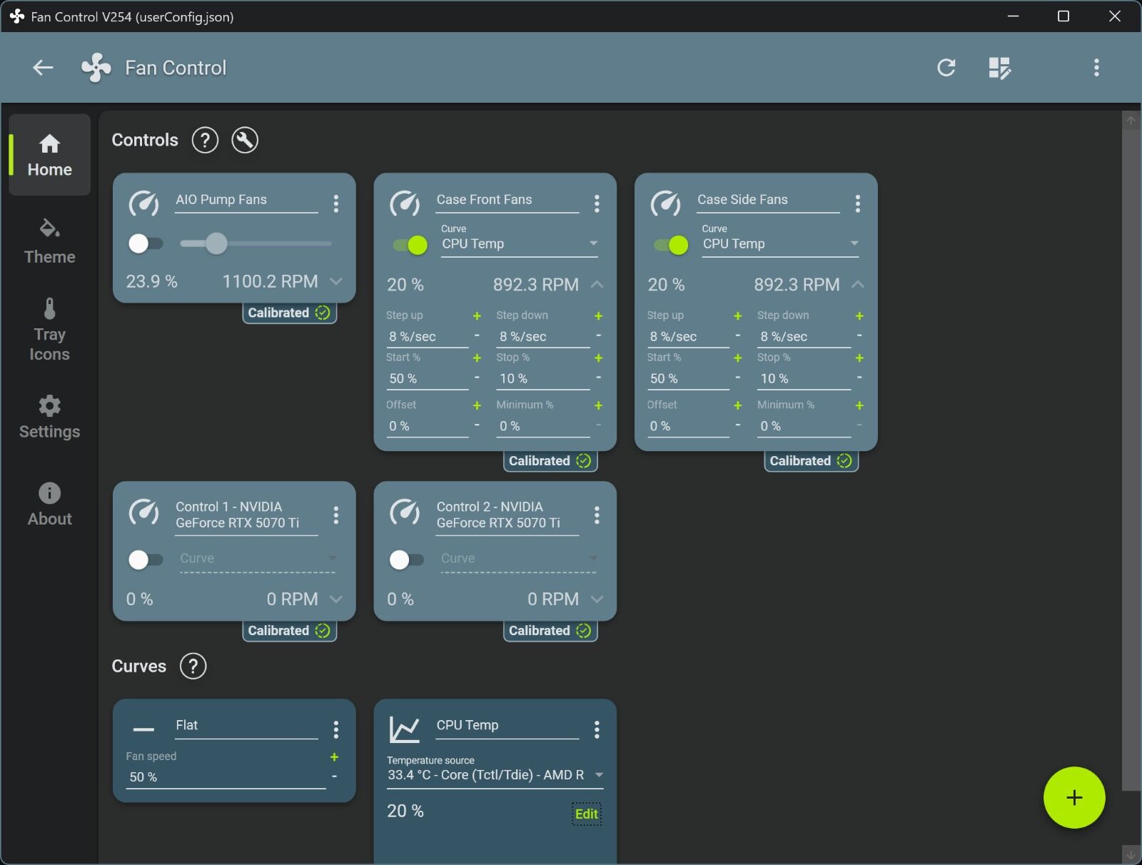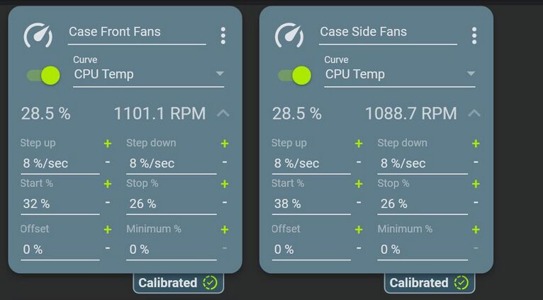 Je vois un problème de calibration, parce que c’est pas les bonnes valeurs calibrées sur les ventilos, un start à 38% et un stop à 26%, ça n’a aucun sens. ![]()