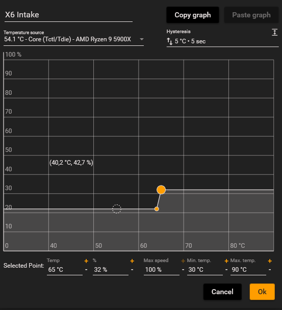 Ma question est surtout la gestion des vitesses. En gros a 65°, ça augmente la vitesse. Mais souvent la température oscille rapidement entre 65, 64, 65 etc… et ce qui fait que les ventillos arrêtent pas de changer de vitesse.