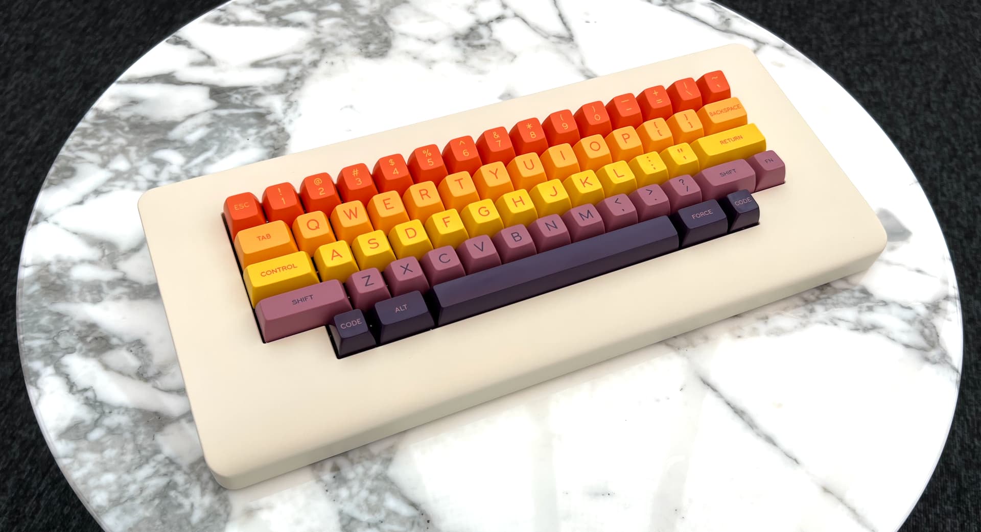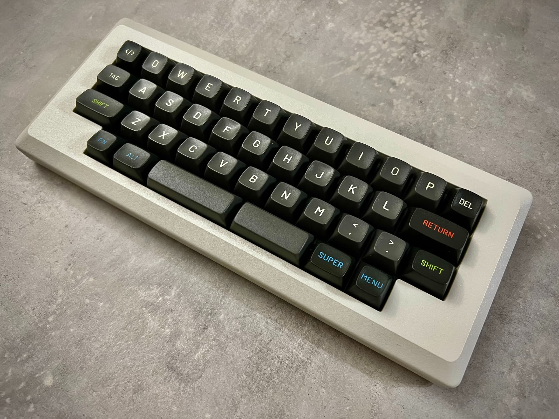 le design est inspiré du clavier Apple M0110 du Macintosh, mais en plus petit.