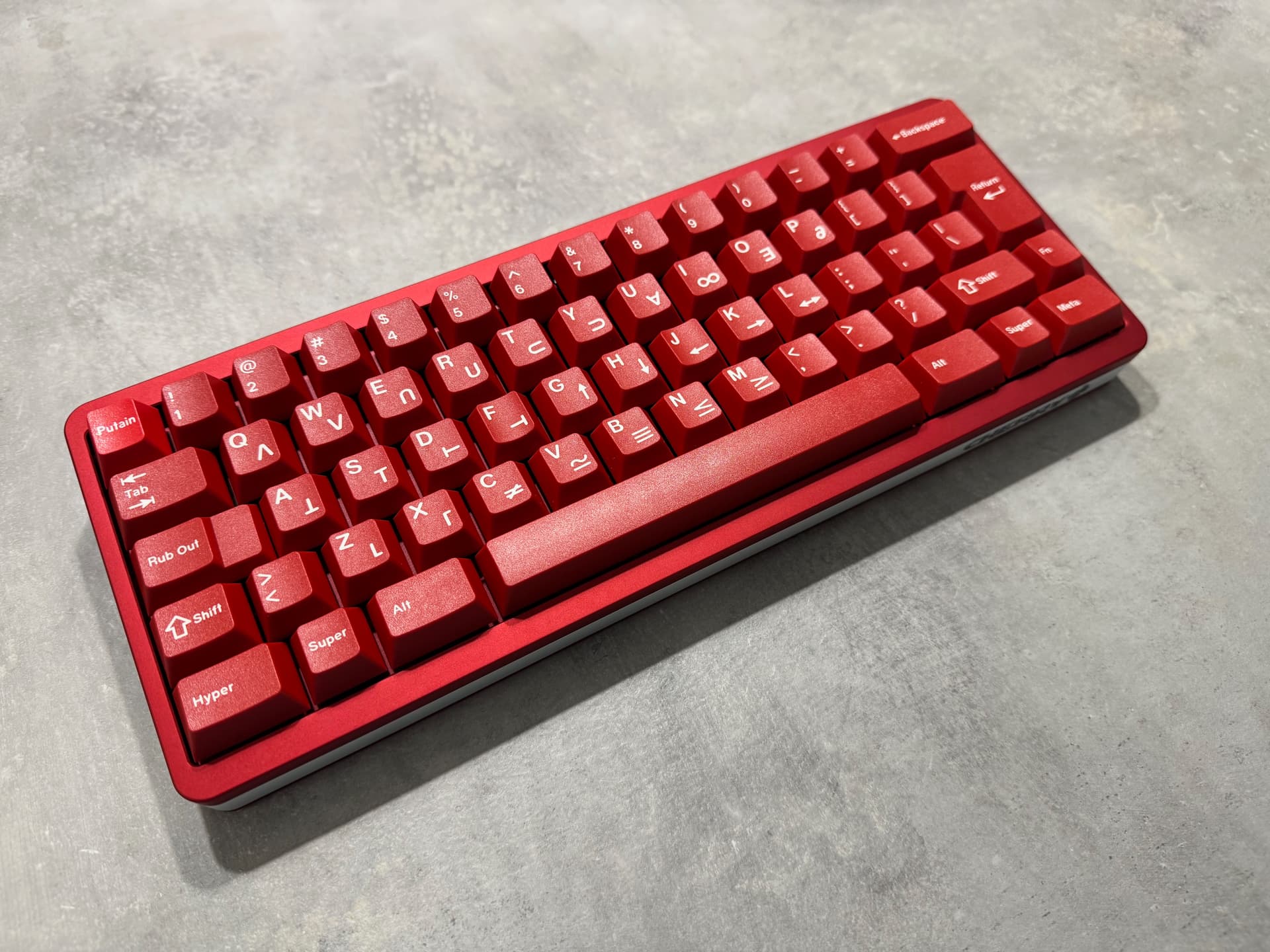 - toucher : switches (Oat linear) bien lubrifiés, wobble quasi inexistant, gasket avec système de ressort « butterfly leaf » qui réparti mieux l’appui. Keycaps PBT Dye-Sub.