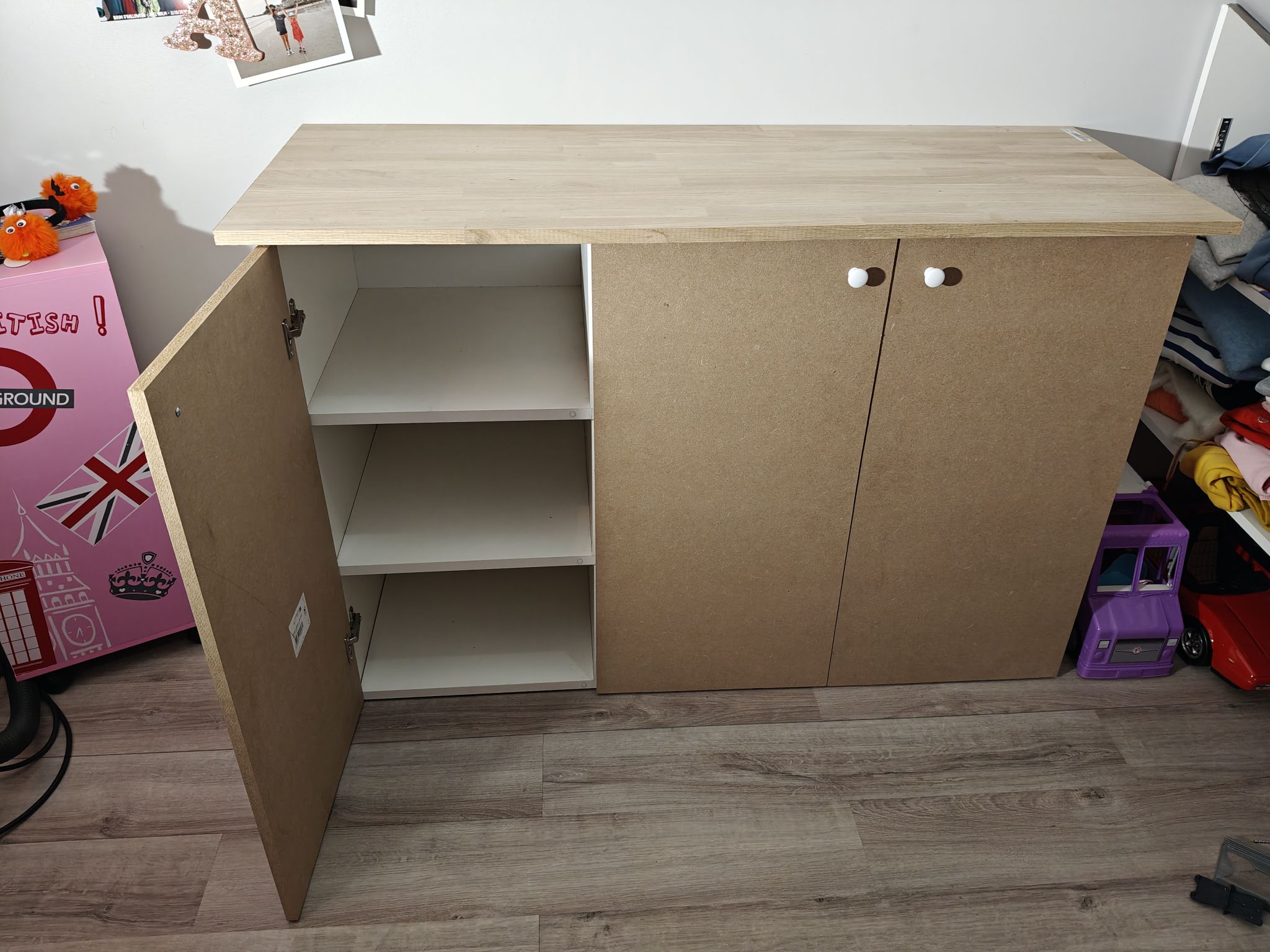 Bon! J’en vois le bout ! Prochaine étape : vernissage du plateau et fond dur/peinture sur les portes