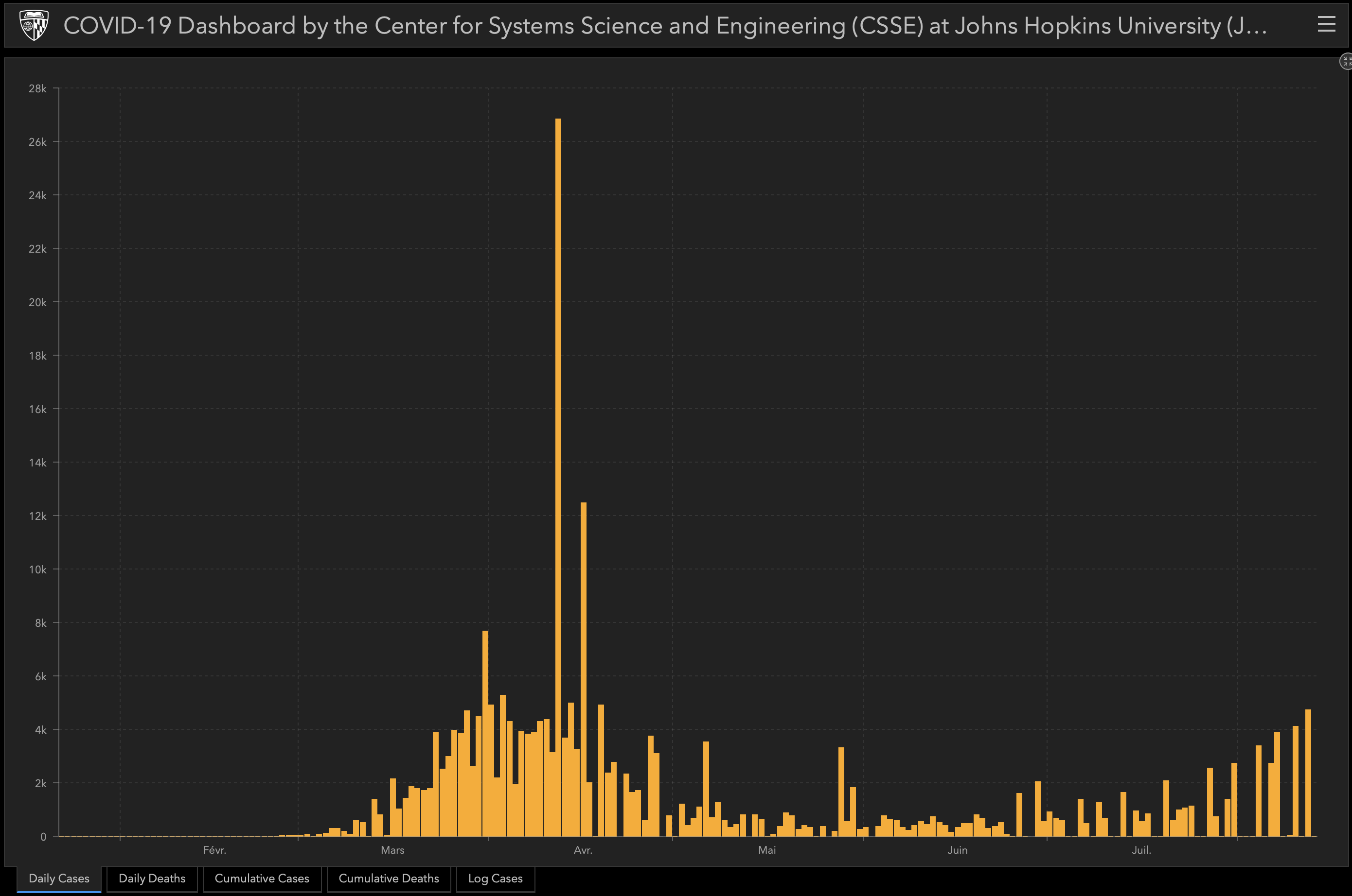 Et il y a qq chose qui me « dérange ». Autant quasiment tous les pays, ont des chiffres publics et quotidiens qui sont référencés sur ce site, autant pour la France c’est un peu en pointillés… un jour oui, deux jours non etc. etc.