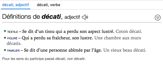 Tu m’as appris un mot pour « décati », le dictionnaire de ma tablette ne connaissait pas !