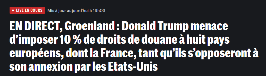 À mesure que les choses continuent de s’envenimer avec les US, tandis que de l’autre bord, Poutine continue à tirailler l’Ukraine, les puissances historiques de l’OTAN(moins les US) n’ont à mon avis pas le choix. Pour autant qu’ils s’en contre-fouteraient du Groenland et de “la sécurité de l’arctique” (ce que je ne crois pas), ils ne peuvent pas laisser faire, sauf à vouloir de manière collective et concertée devenir des vassaux des US ou de la Chine.