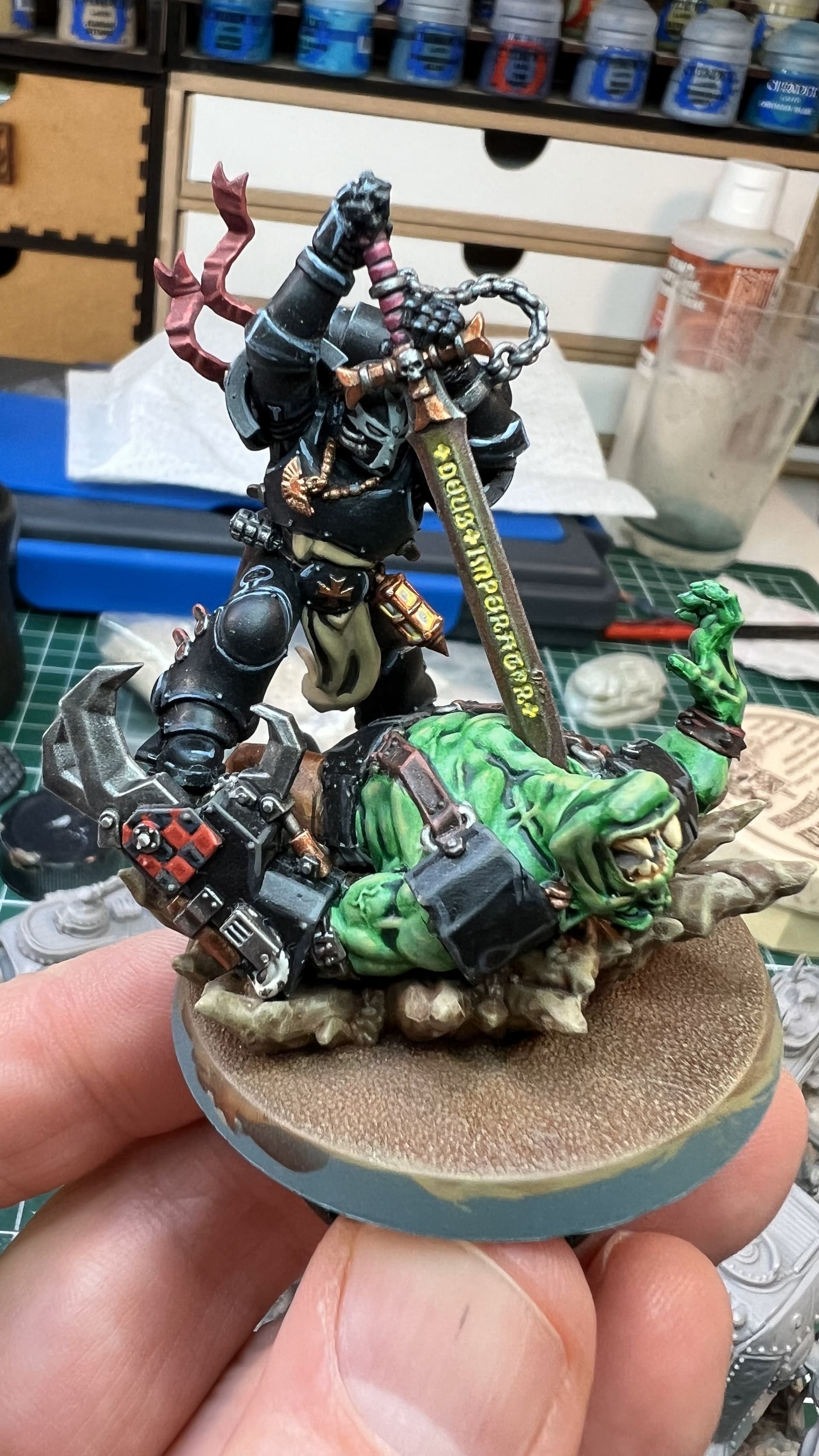 En l’absence de vieux pots de peinture pour faire office de « porte-figurine », j’ai recyclé les fioles de @Coldorak !