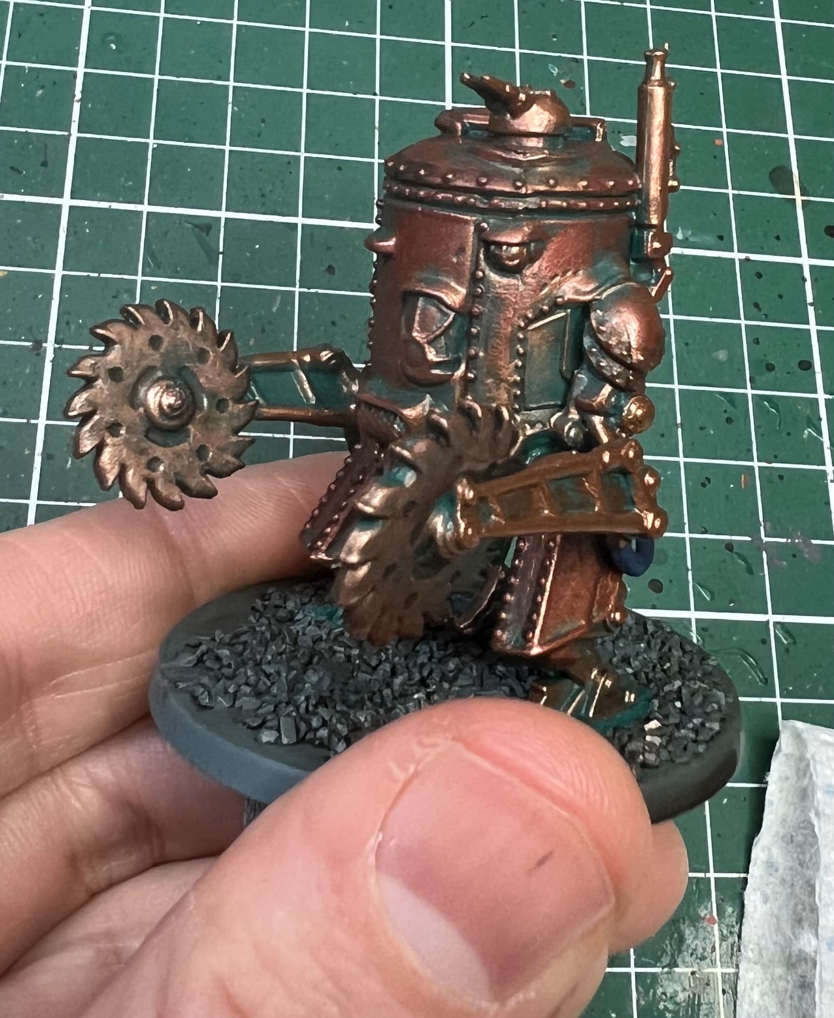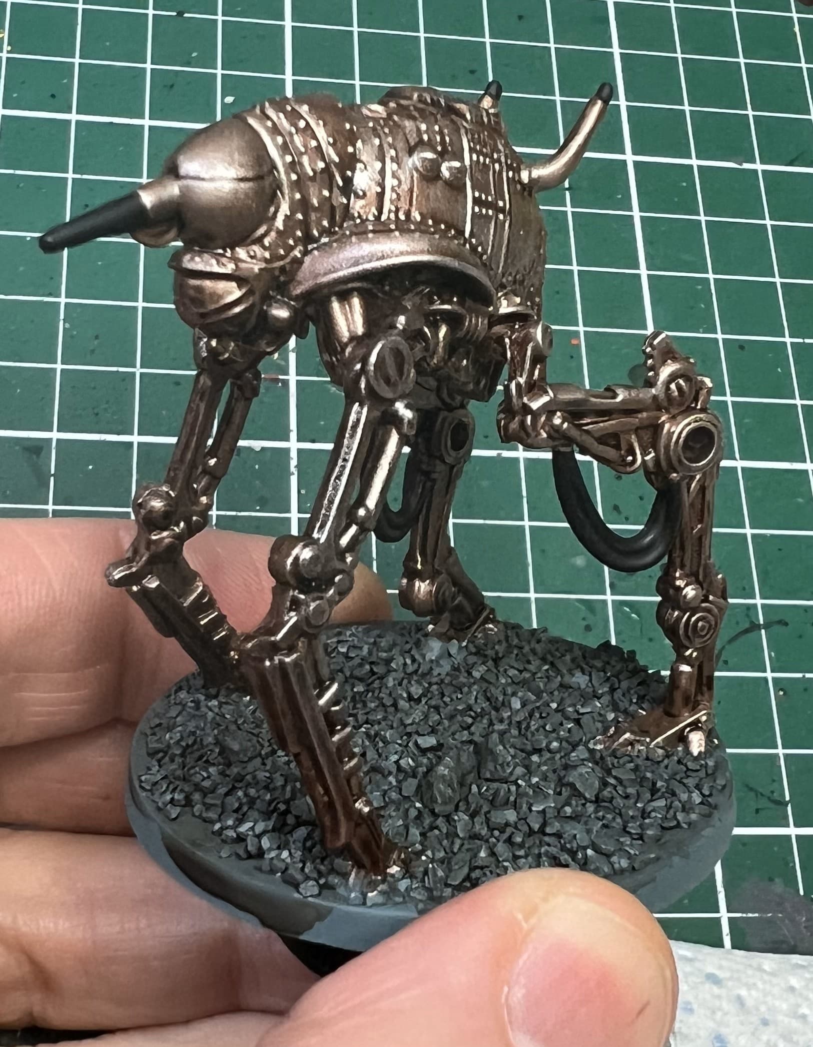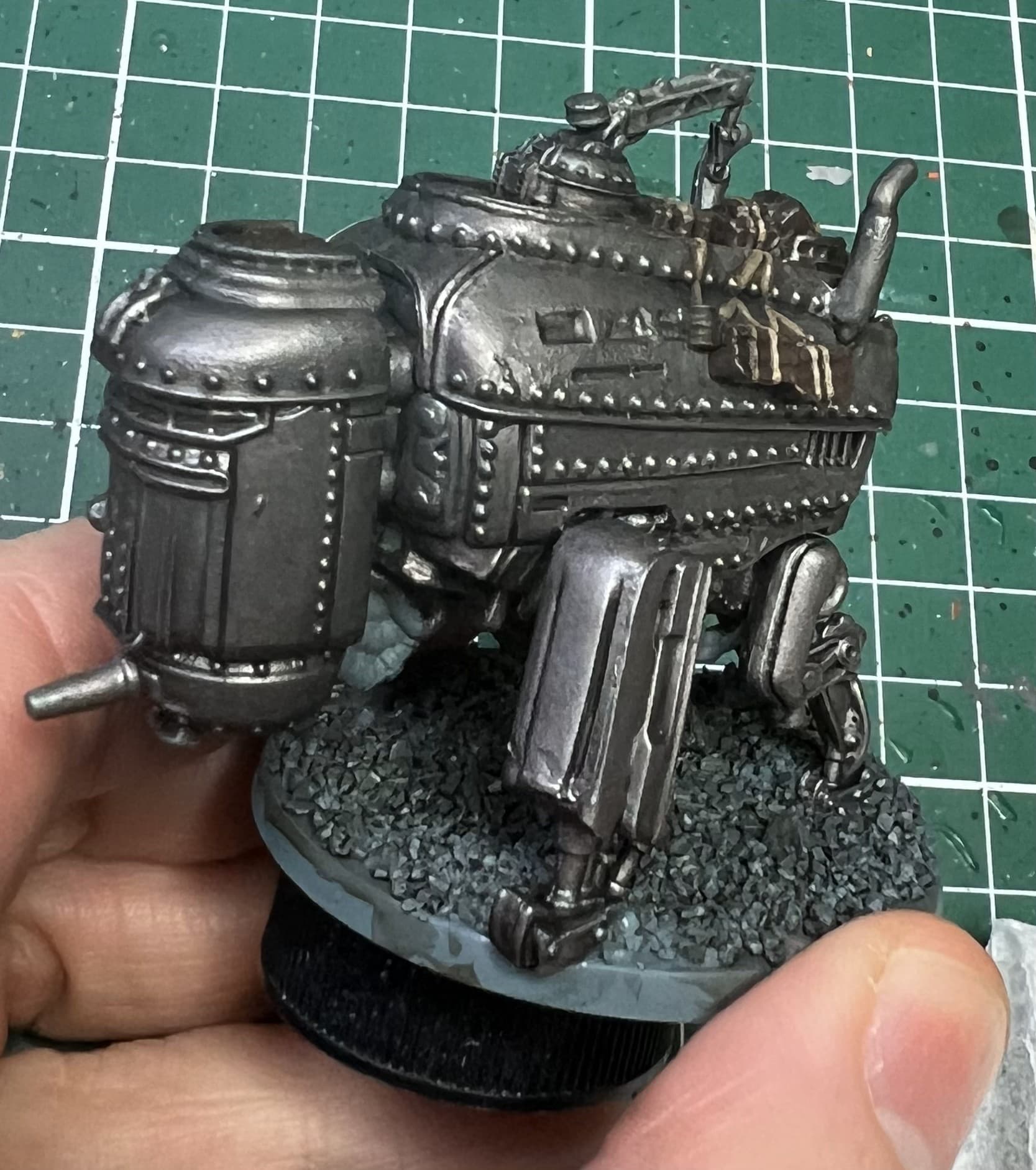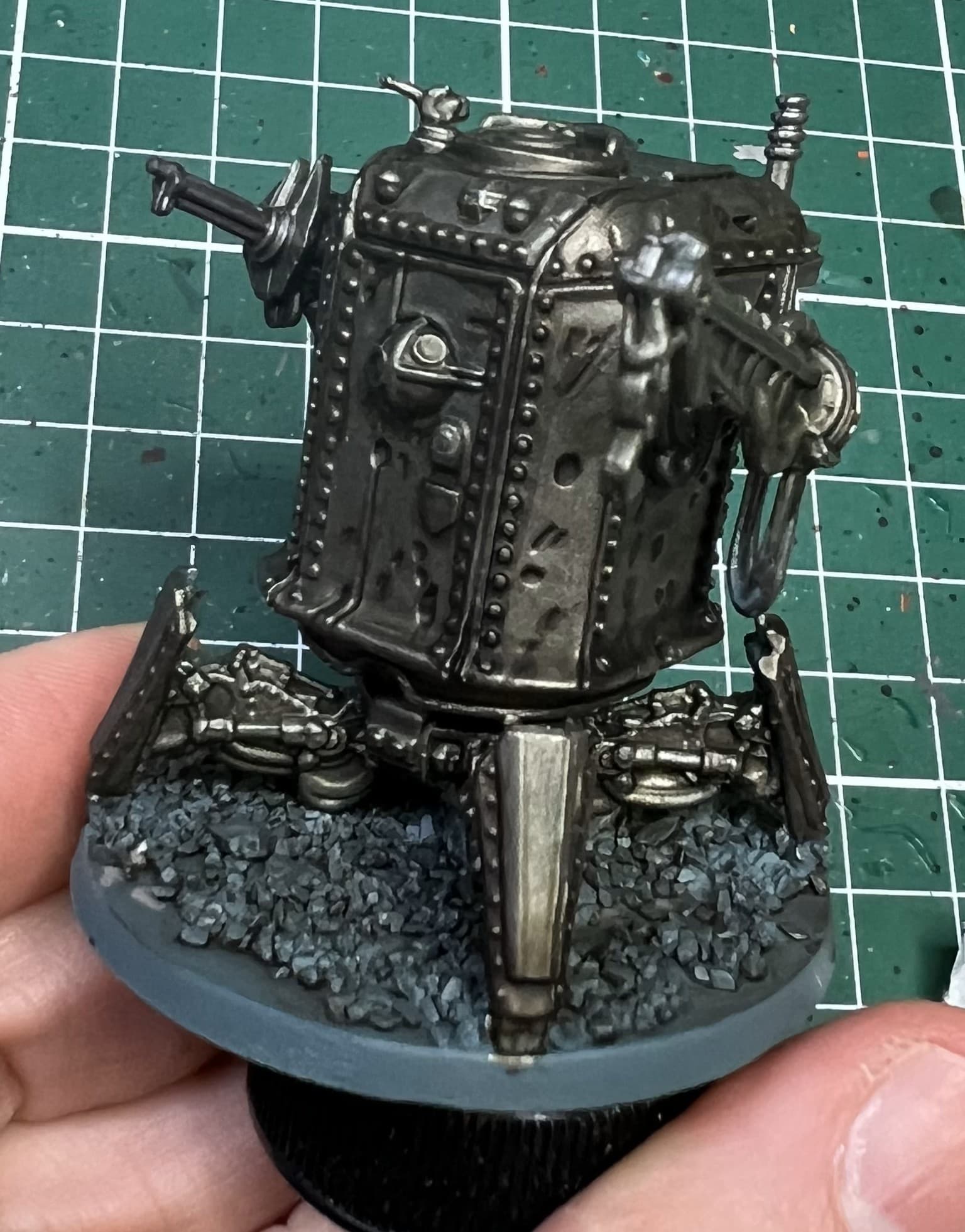 * (deux couches valent mieux qu’une si tu dilues trop, plutot que d’avoir un wash qui va faire du pooling partout. Et t’es pas obligé d’en remettre partout, c’est possible de juste faire un peu de retouche, meme avec un wash. Si tu es satisfait de ta dilution et de la couverture, une seule couche suffit)