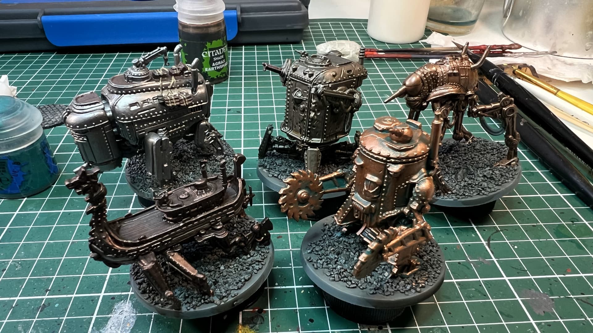 Moi j’utilise les mêmes peintures pour les socles un peu chiadés qui ont de jolies roches ou des crânes ou des trucs comme ça.