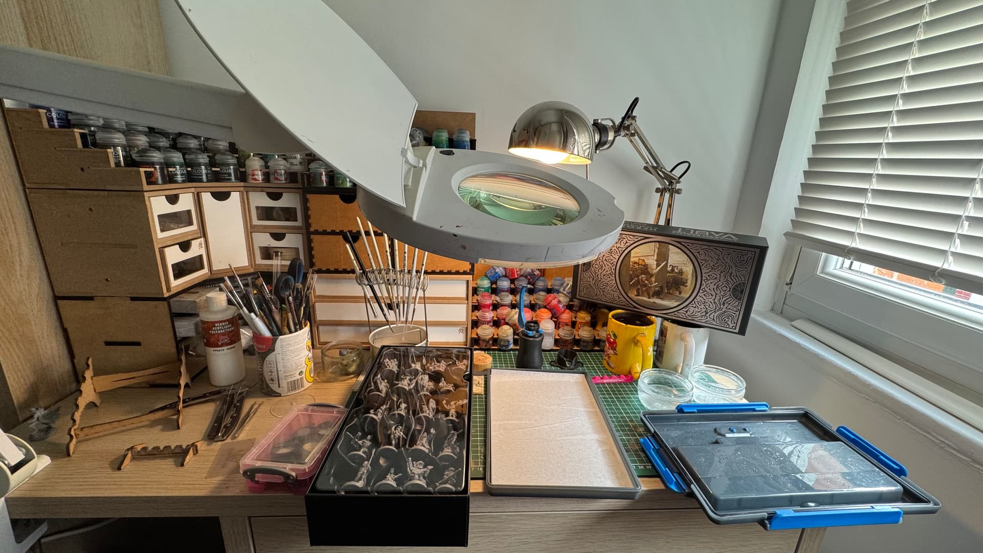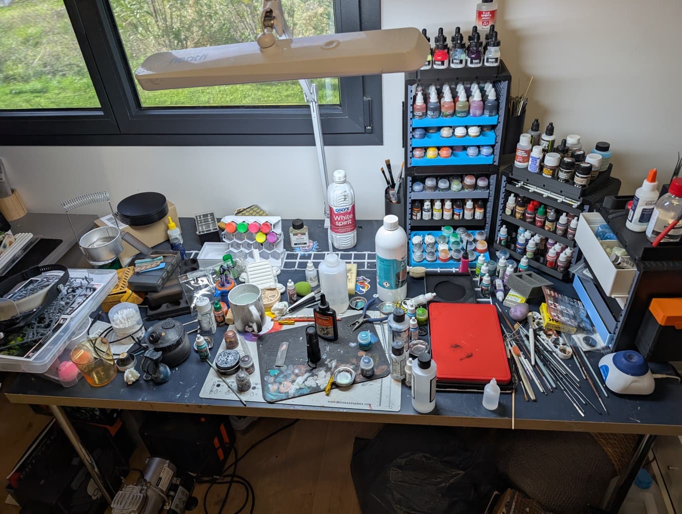 Faut que je trouve encore comment je vais faire pour mes peintures histoire que ca soit pas trop le bordel, mais pas trop chiant a deployer. Sinon pour le meuble noir, y’a le PC en dessous, donc fallait quelque chose qui puisse se mettre au dessus. Je recommande donc l’etagere a WC FROSJON https://www.ikea.com/us/en/p/froesjoen-over-the-toilet-shelf-black-60574905/