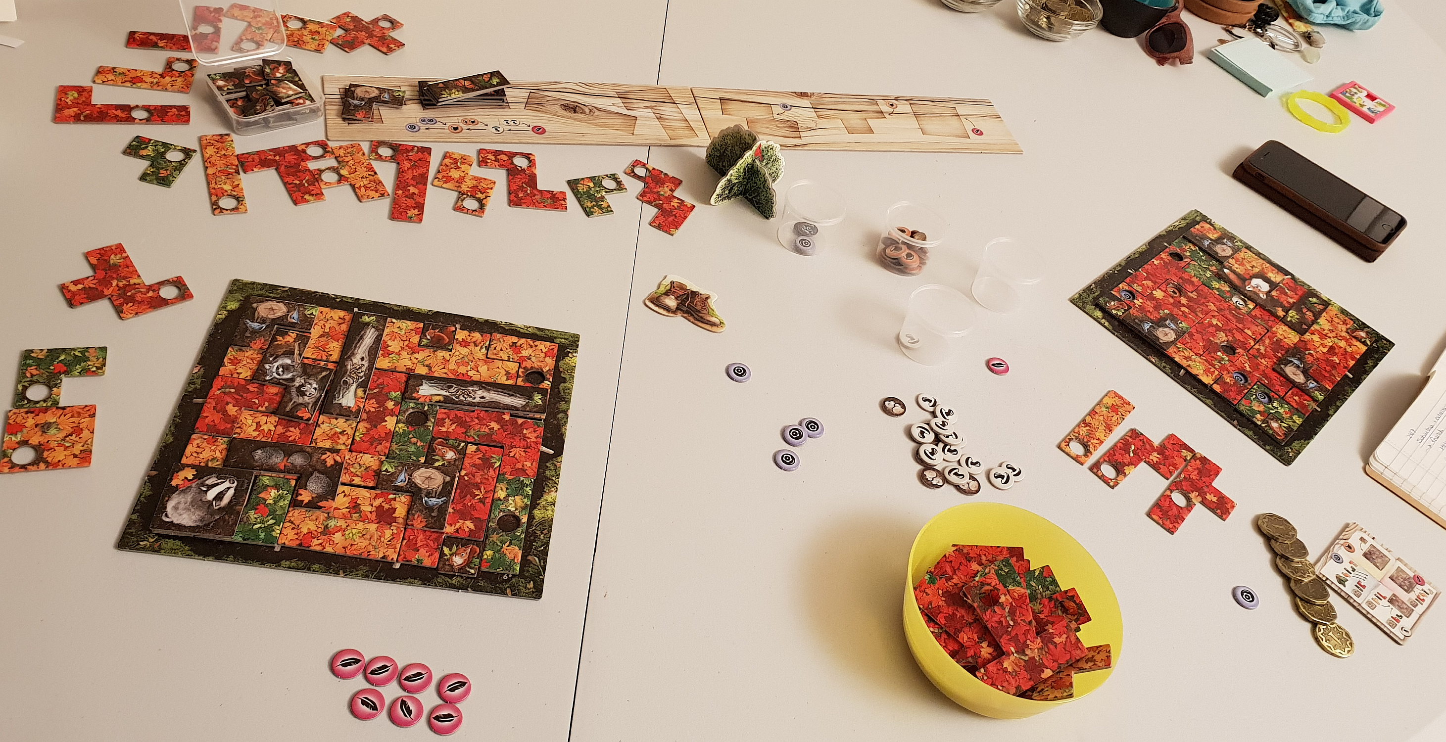 juste parce que je kiffe ce jeu (palace of mad king ludwig) et que c’est ma premiere partie à 4, qui n’a rien à voir en terme de stratégie: