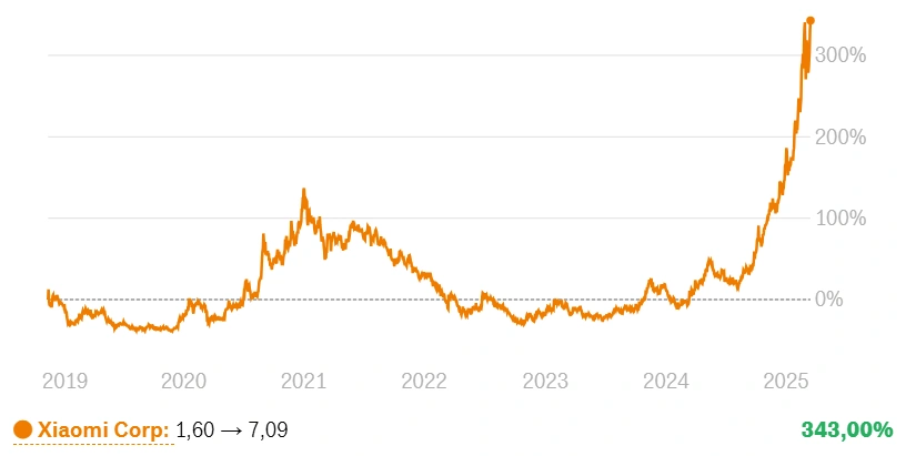 Xiaomi aims to sell 350,000 electric vehicles by 2025. That would be more electric cars than Volkswagen, Audi, BMW, and Mercedes and Porsche together in 2024 in China.