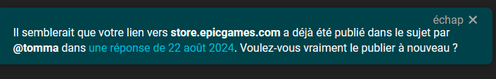 Mais vu que j’ai eu une alerte sur le forum, je pense qu’il a déjà été offert ![]()