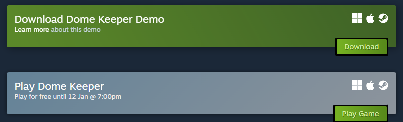 Tu n’as pas le bouton “Play Dome Keeper” ?