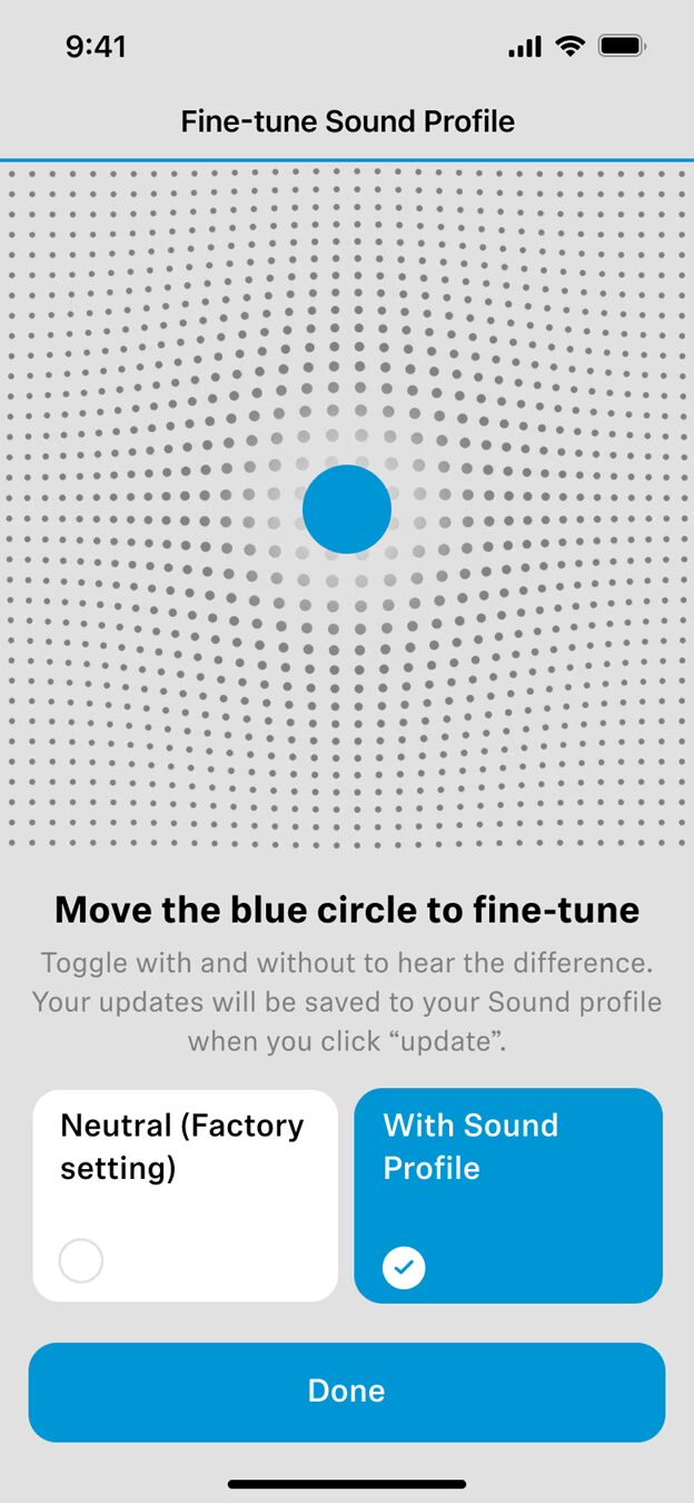 - Réglage du son avec des presets d’égalisation graphique classiques, un questionnaire avec des exemples de son ou bien un mode purement graphique en 2D pour noob du son