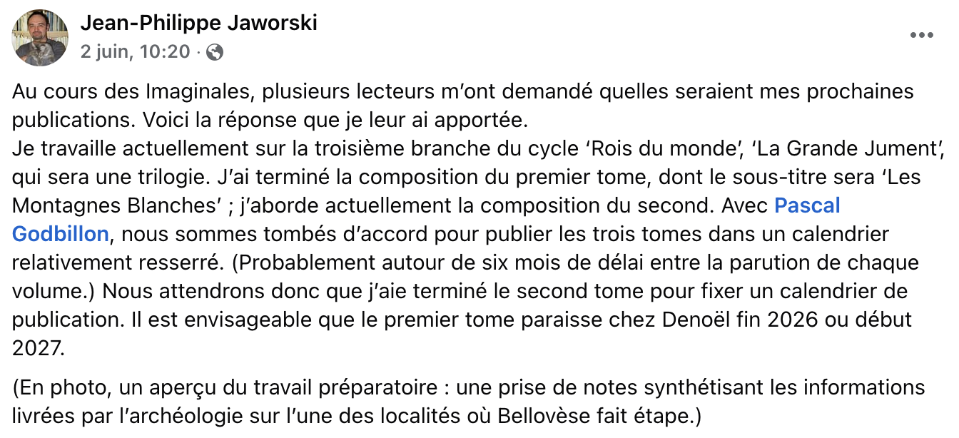 Donc le prochain tome s’intitulera « les montagnes blanches », et Bellovèse passera par Lyon (les fouilles archéologiques en question concernent l’agglo de Lyon-Vaise).