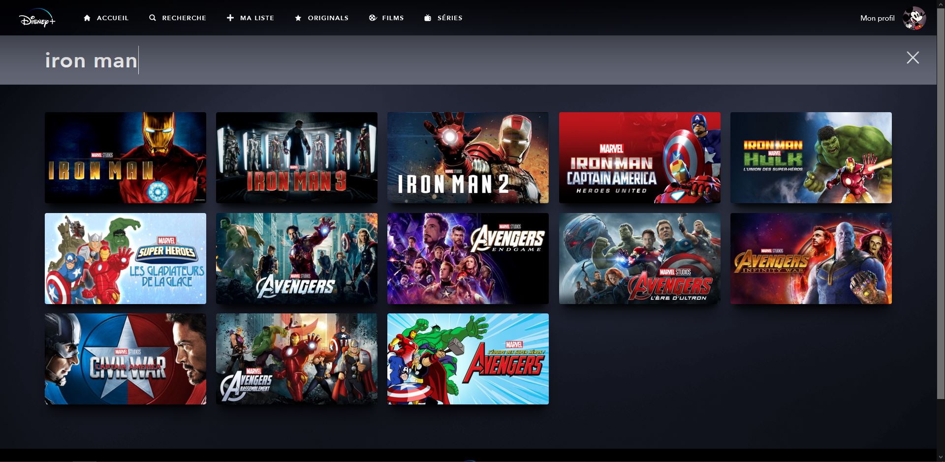 On a eu Iron Man 1 sur Disney + au tout début, l’année dernière.