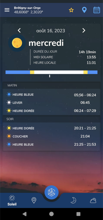 C’est peut être moins évolué (pas d’AR par exemple) mais j’utilise cette app et c’est très clean (pour iOS, je sais pas si l’app existe sur Android) : Heure Bleue (Solar Calculator) dans l’App Store