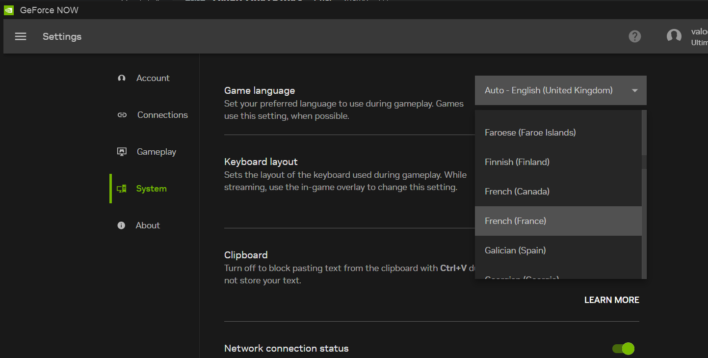 Bah surtout que de mémoire, il reporte la langue choisie dans l’interface de GFN …
