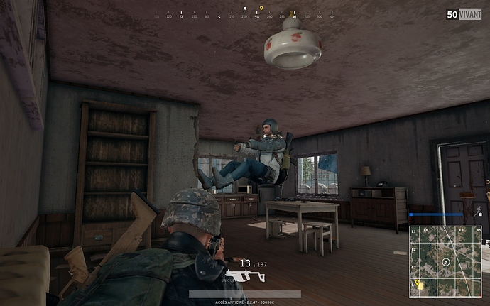 Caf a fait la même chose avant hier soir en courant. On pensait qu’il crèverait assez vite. Sauf qu’il a couru dans le vide du sud de Pochinki jusqu’à la plage a l’ouest, 3/4km, dans les dernières zones, apparemment sans jamais croiser personne…