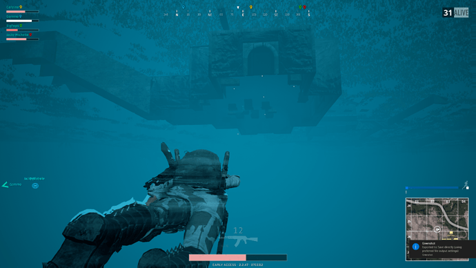 Hier, cascade en moto, mon perso passe à travers le sol et… NAGE. Gros fun avec ma team, morte, vu que j’étais sur la dernière zone à enquiquiner les 2 derniers survivants qui ne comprenaient pas pourquoi ils ne gagnaient pas.