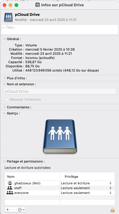 J’élague le problème en supposant fort que le problème vient de la combinaison des deux éléments cités. Quanq je télécharge un fichier, quel qu’il soit et quelle que soit sa provenance, si je le laisse se télécharger par défaut dans le dossier « téléchargement », il n’y a aucune problème mais dès que je fais « Enregistrer sous… » au moment du téléchargement et que je pointe comme destination un répertoire pCloud, systématiquement je me retrouve avec un fichier avec le bon nom mais qui fait 0 octet et un autre fichier nommé « Non confirmé XXXXXX.crdownload » qui fait la bonne taille.