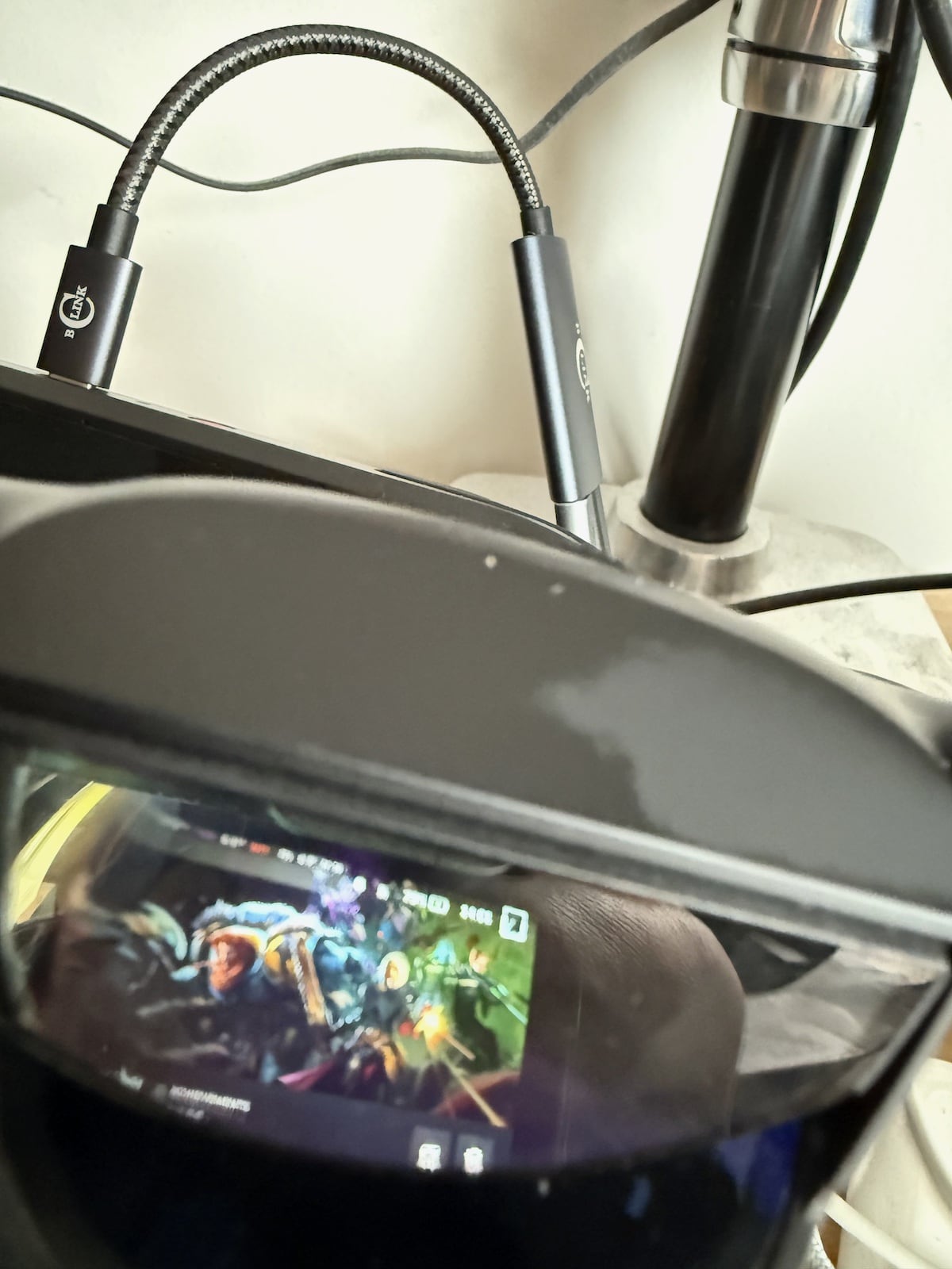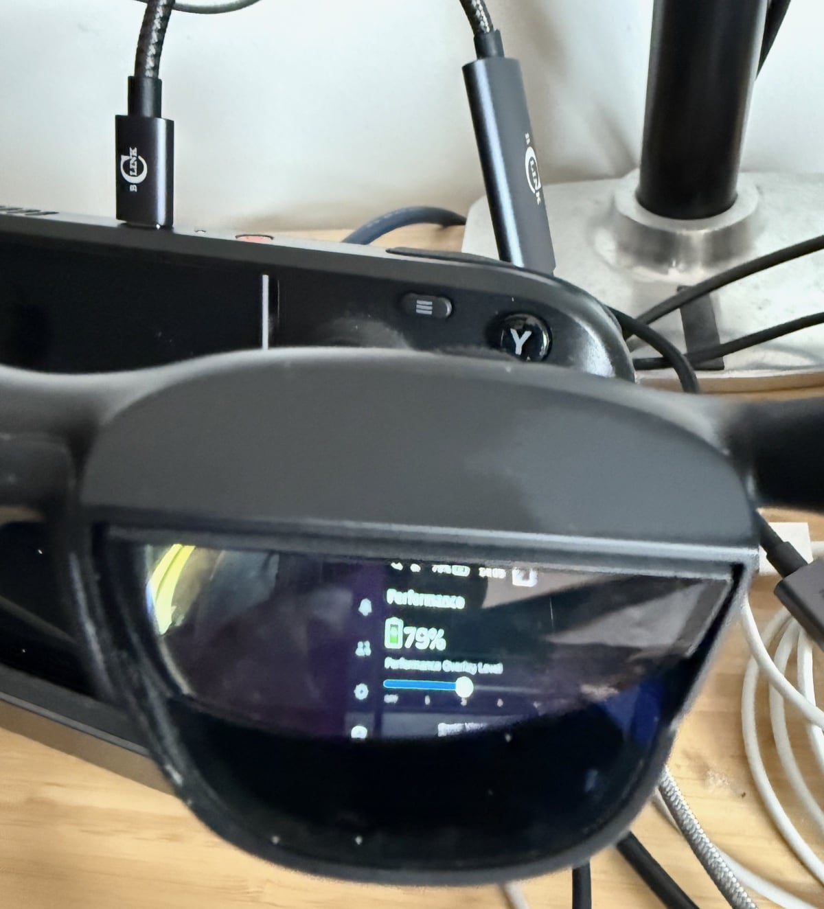 Utilisateur de SD avec lunettes Viture, je me suis dit que ça serait top de pouvoir charger le bousin (et l’utiliser à pleine puissance) tout en ayant les lunettes branchées dessus. Malheureusement, le dock Ugreen que j’ai pris avec n’a qu’une sortie HDMI en video out, et l’usb-c de côté ne fonctionne pas avec les lunettes.