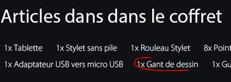 Elles ont l’air bien ces tablettes. Je me demande ce qu’est le « gant de dessin » fourni avec la tablette Deco Pro…