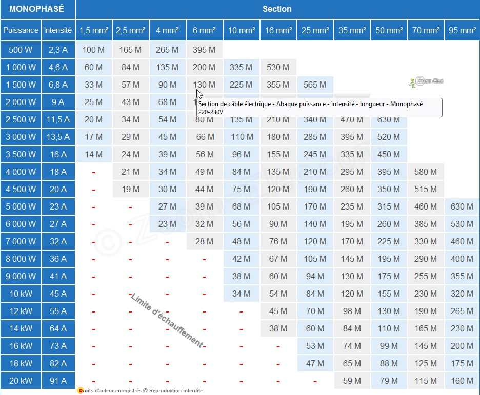 Oui j’en ai un, il faut bien respecter la section de câble en fonction de la longueur, si possible prendre une section au dessus pour plus de sécurité.