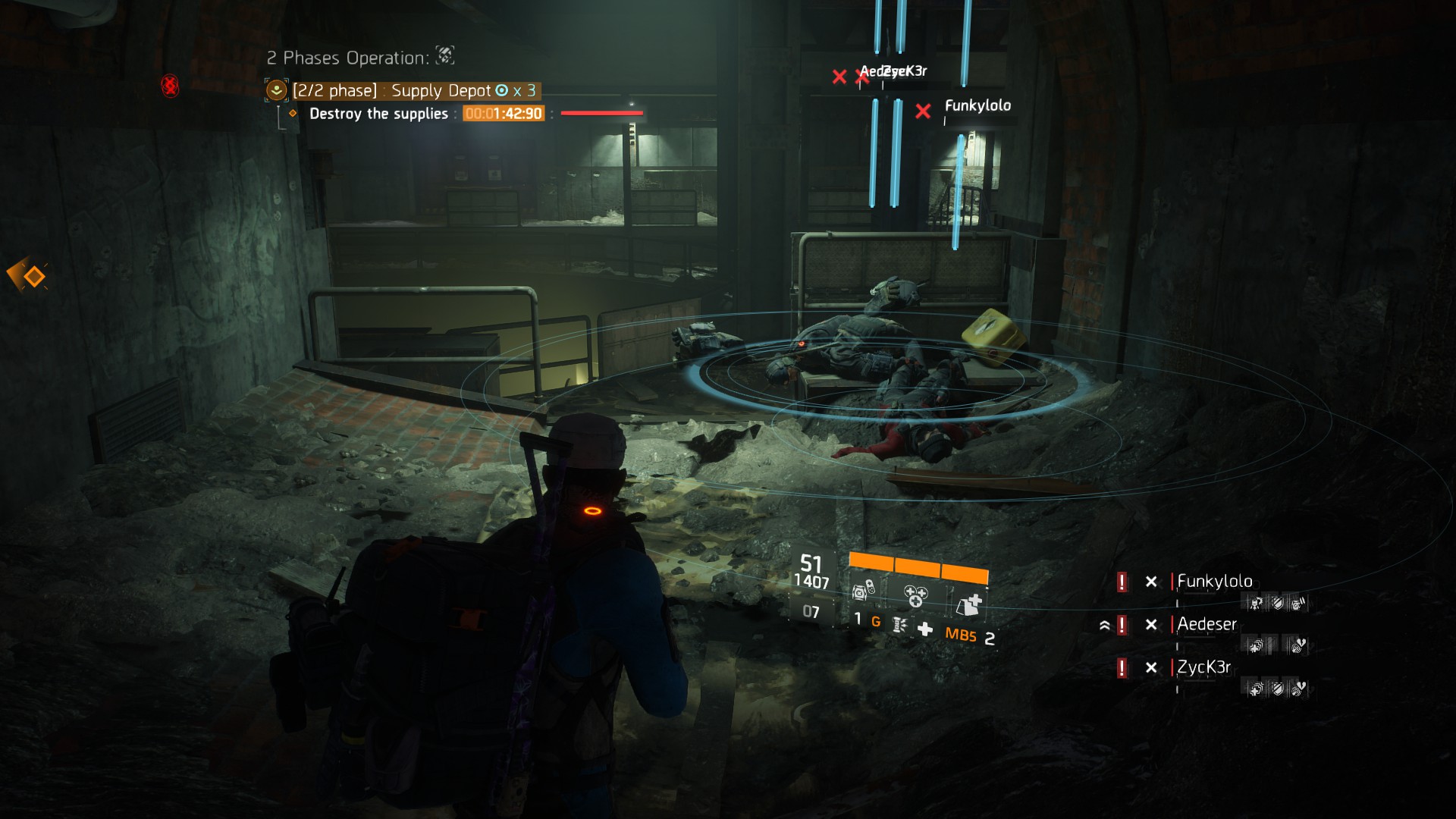 Apres un moment à jouer avec un build skill (tourelle + drone) j’ai changé après avoir loot un des nouveau pompe nommé (The Mop). Maintenant je suis 5 rouge et un bleu. Bouclier Crusader + Hive Artificier, le set Hunter’s Fury, un pistolet nommé TDI « kard Custom » (+1 rang de skill) et le fameux pompe. Et spe technicien.