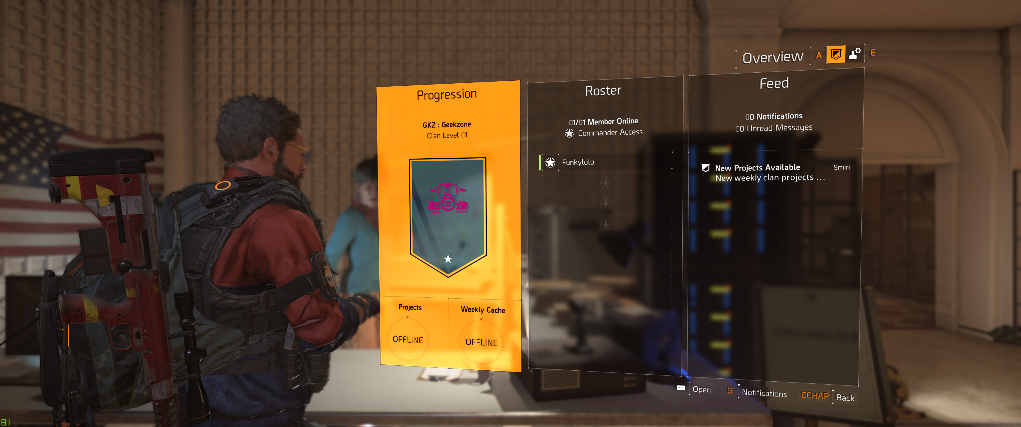 Hop, clan Geekzone créé (Tag GKZ, obligatoirement 3 lettres)…quand vous avez accès au NPC (après la 3ème mission histoire), vous pouvez demander une invitation via « Find Clan » sinon, indiquez moi votre pseudo Uplay exact (casse etc.) que je vous invite à la mano, ou envoyez moi une demande d’ami Uplay (Funkylolo) (je vous rassure, on peut changer le logo)