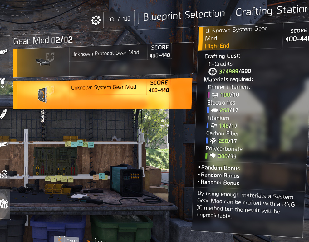 Les Gear Mods (Offensive/Defensive Protocol/Systems) se lootent comme tout matos, mais peuvent aussi se crafter. Je ne me souviens plus quand ca se debloque, mais tu devrais avoir la possibilite de craft un gear mod du gearscore de ton Craft Bench.
