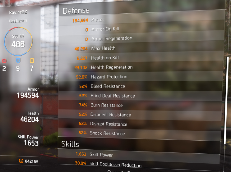 Le chem heal a 11 charges (2 mods a +4, et les 3 de base) avec un CD assez court, j’ai quasi toujours un heal de up. Avec le boost de Survivaliste on a 15% de outgoing heal en plus (donc un meilleur heal) que la plupart des gens. Avec Safeguard, on peut remettre un mec a 100% d’armure en 1 tick.