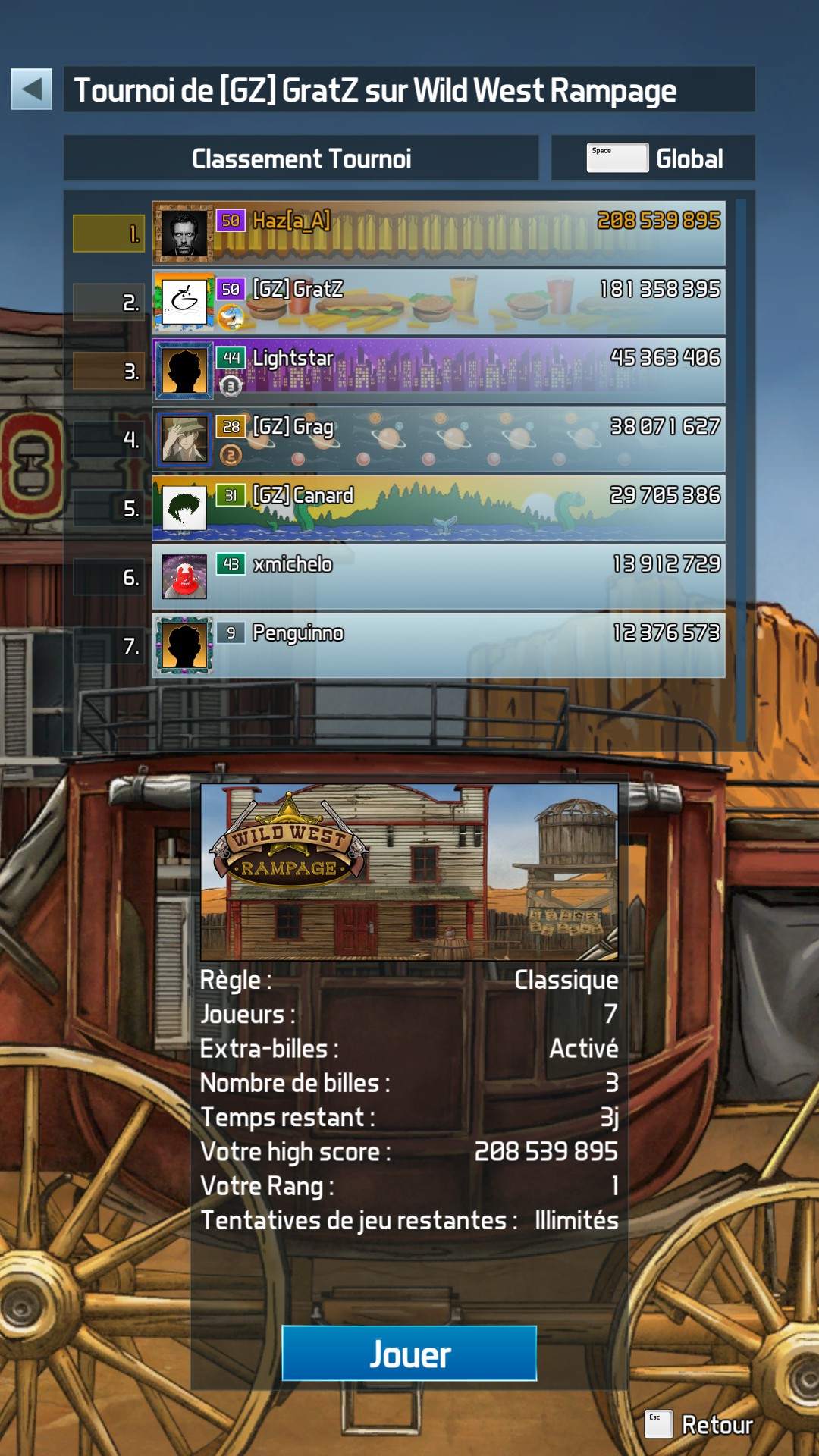 Grâce à un élan de chatte non dissumulée , j’ai réussi à me hisser en haut du classement ce matin en lançant une bille après avoir été voir s’il y avait du changement dans le tournoi que je pensais terminé. Genre « tiens je croyais que c’était fini mais il reste 2h, allez, je peux bien prendre 10 minutes pour voir que je n’y arrive pas ».