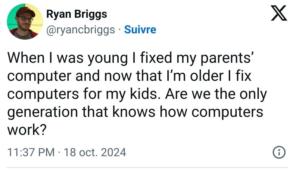 Oui mais pas vraiment vu que les générations avant eux (pas tout le monde évidemment…) savait aussi le faire. Pour les voiture c’est plus une compétence qui a arrêté d’être transmise.