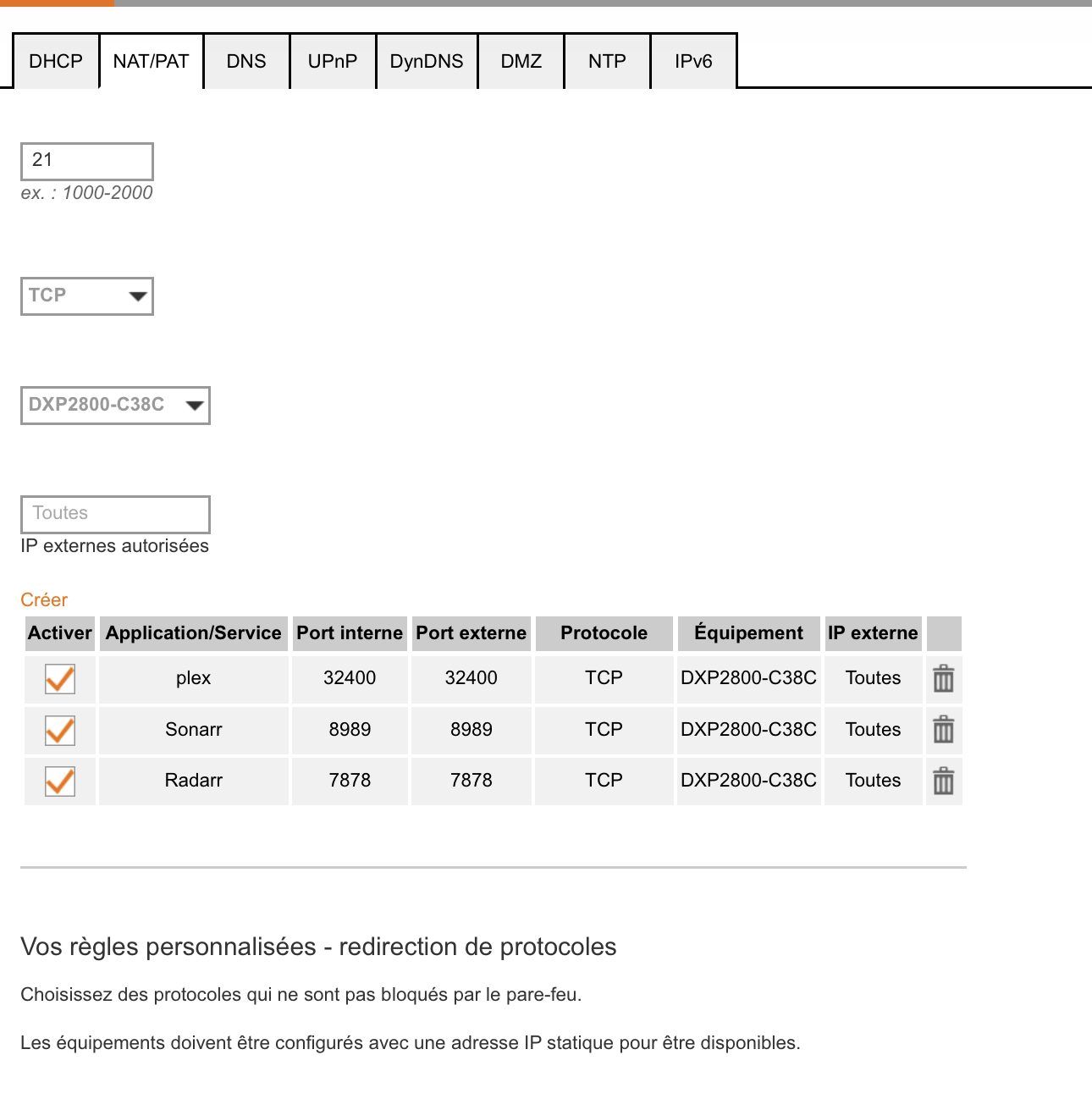 Voilà les règles NAT