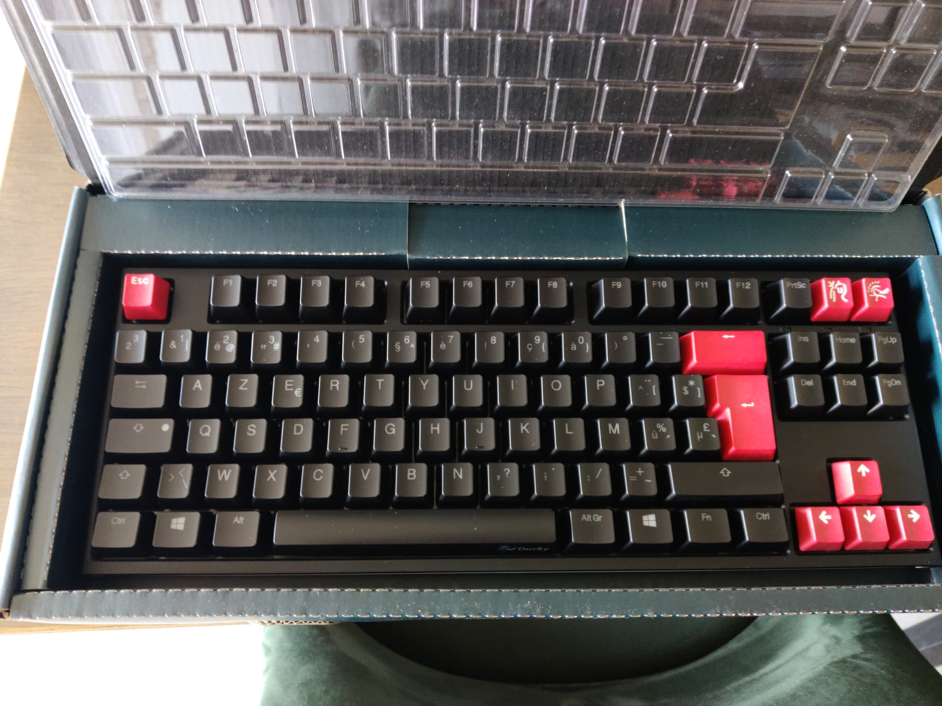 Hola! Les deux ont des touches majoritairement blanches ou noires mais avec des petits sachets contenant des touches fléchées de rechange dans une autre couleur (comme les Enter et Backspace que tu peux voir sur les photos - et qui sont d’ailleurs installées):