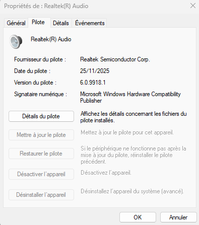 J’ai bien sûr mis à jour les drivers Realtek via le site de ma carte mère (MSI Z390-A Pro) ainsi que le BIOS juste aujourd’hui.