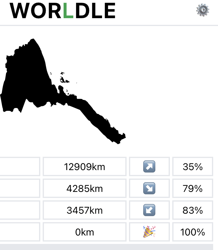 Y’a Worldly aussi maintenant où on essaie de deviner le pays avec sa forme, à l’origine, et on est ensuite aidé par la distance avec la bonne réponse et la direction générale par rapport au pays donné.