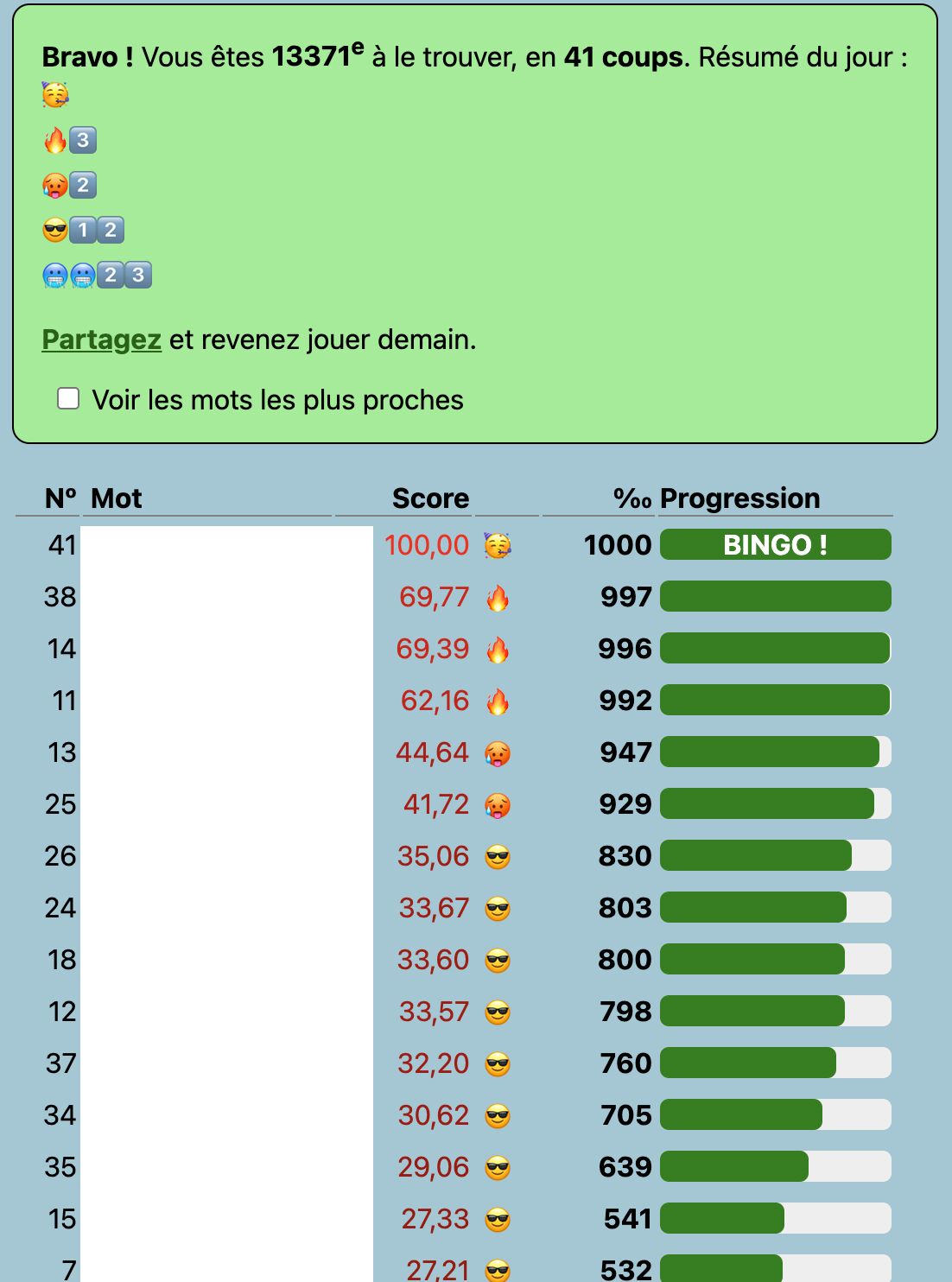 Je crois que je commence à comprendre la logique de Cémantix, que j’adore et déteste en même temps !